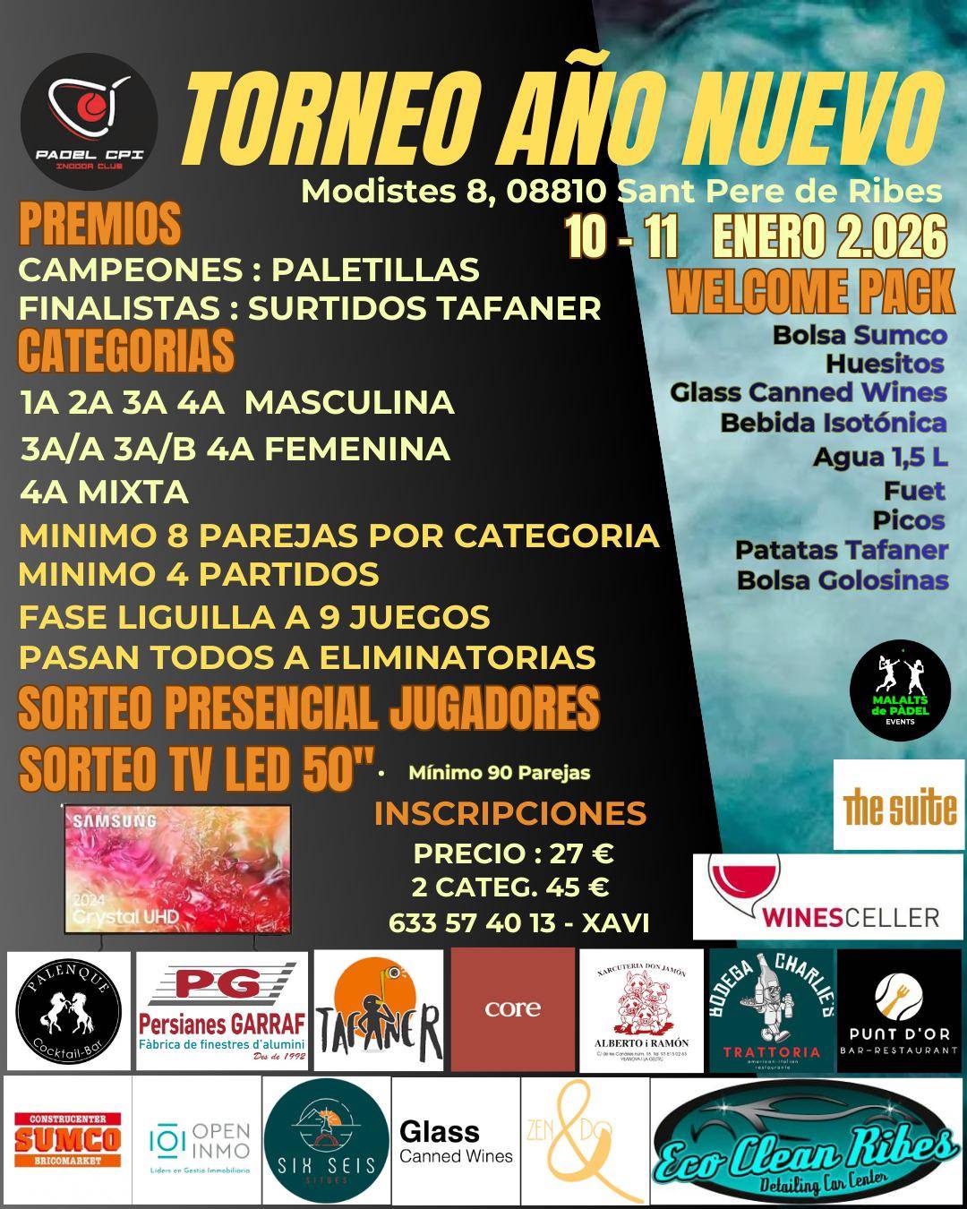 • Primera Prueba del Circuito Malalts de Pàdel x CPI Torneo Año Nuevo 10 y 11 de Enero